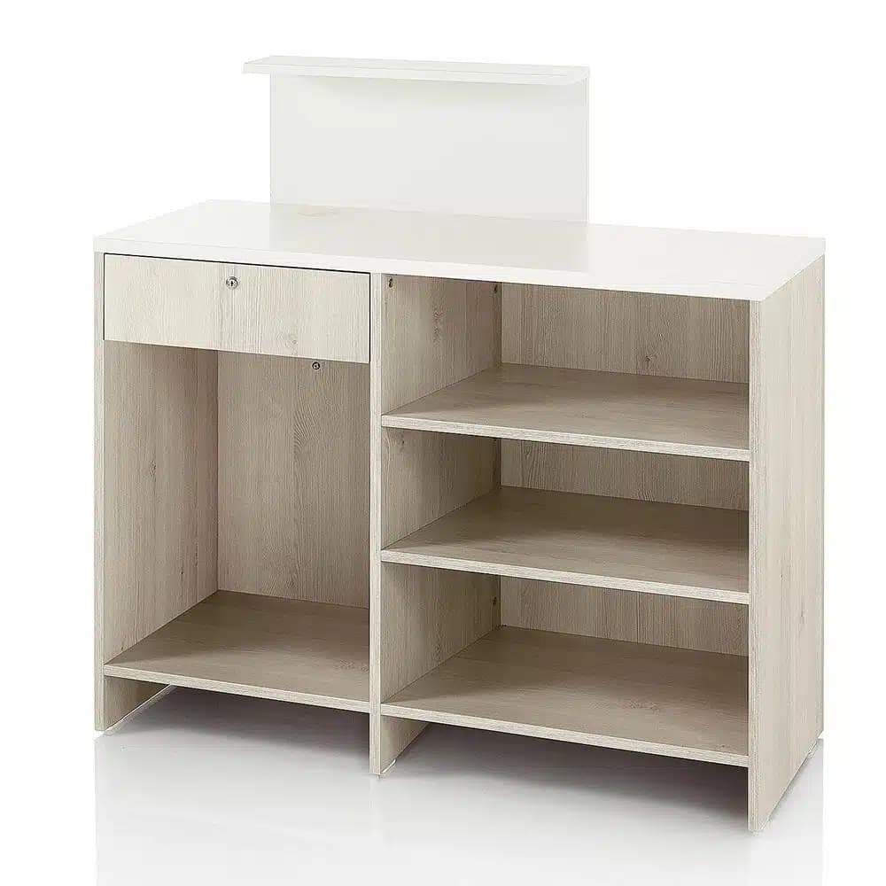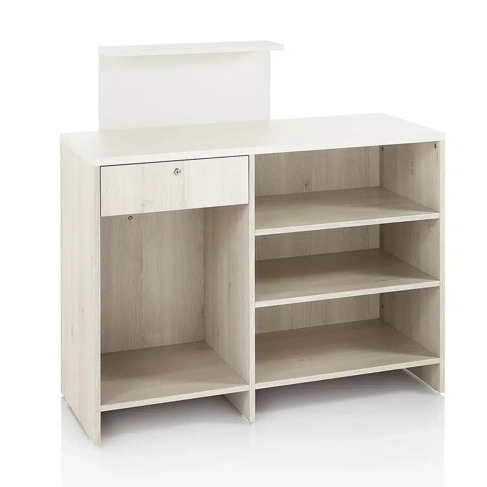 Reception per centro estetico in legno Larice naturale e laminato bianco. Il Banco Cassa Reception in Larice Naturale e Laminato Bianco è la soluzione ideale per il tuo centro estetico, spa o salone di benessere che desidera un’accoglienza professionale con un tocco naturale ed elegante. Questa reception è progettata per offrire un ambiente accogliente e raffinato ai tuoi clienti.