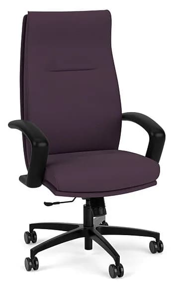 The high back conference chair has a steel frame with top quality, injection molded foam and it has a maximum weight capacity of 350 lbs. The model in the picture has Steel fabric upholstery fixed black arms and a nylon base with carpet casters. There are several different color options to choose from and it comes with a 12-year manufacturer's warranty.
