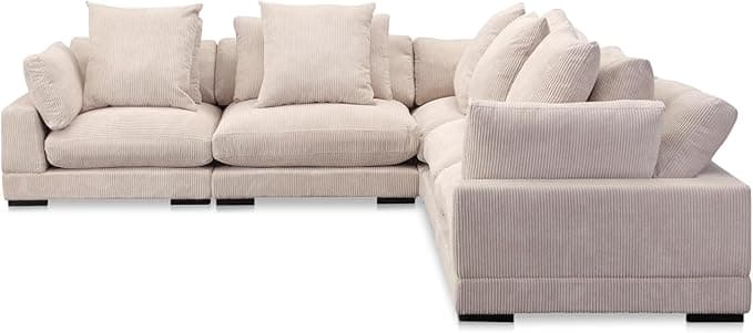NADAAL STUDIOS, Soloman Classic L, Modular Sectional Plush Corduroy, 5 Seater, Cappuccino