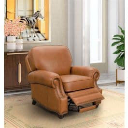 Barcalounger's Vintage Reserve collection features a large variety of traditionally styled recliners all in Top Grain Leather. The Longhorn II brings western style and comfort to your living room. Featuring a solid pillow back, generous rolled arms, and a large brass nail-head trim, the Longhorn II is perfect for those who want to go big.