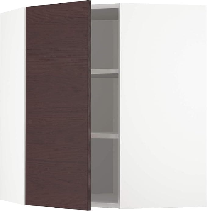 IKEA METOD Corner Wall Cabinet with Shelves, 68x80 cm, White Askersund/Dark Brown ash Effect