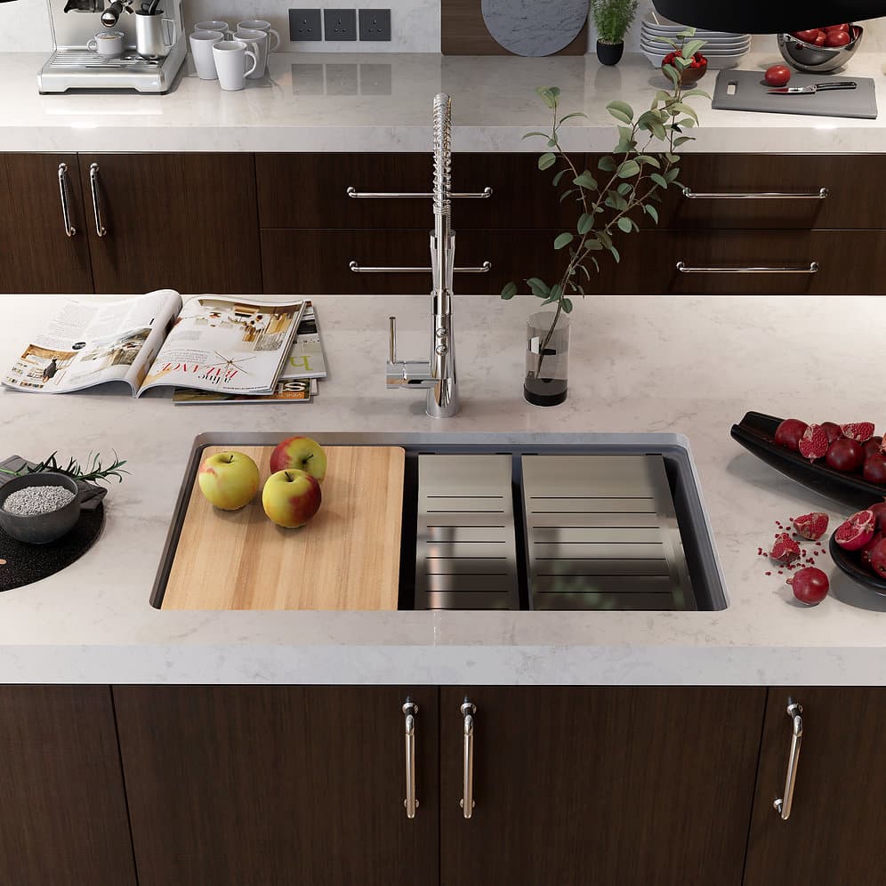 30-inch Side Drain Workstation Granite Composite Dualmount Sink | HighpointCollection