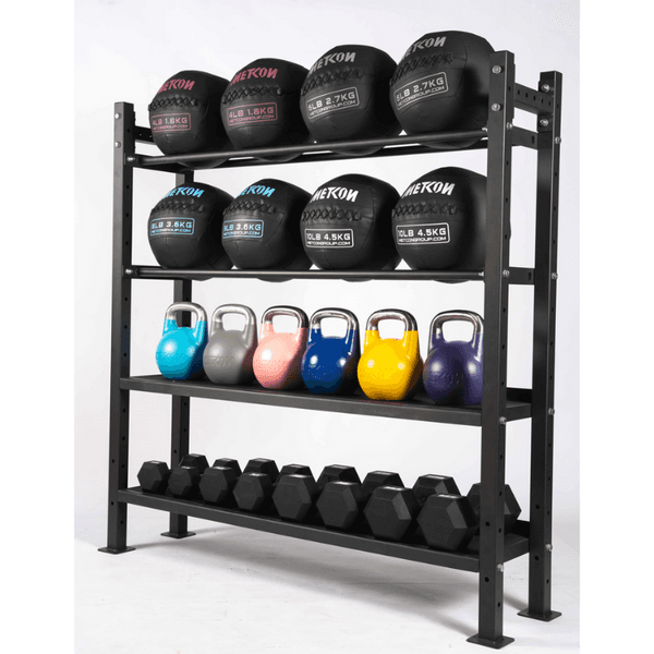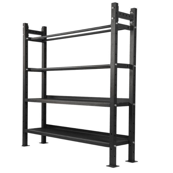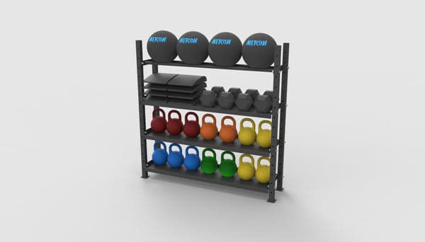 Provides storage opportunities for dumbbells, kettlebells, medicine ball, bars, plates, mats, etc….let us know what you want to store and we will help make it happen.