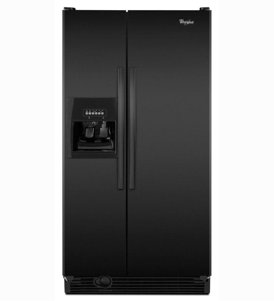 Whirlpool ED5LHAXWB 25.4 cu. ft. Side by Side Refrigerator with Adjustable SpillGuard Glass Shelves, Adjustable Clear Gallon Door Bins, In-Door-Ice System, Adaptive Defrost System, External Ice/Water Dispenser and Backlit Slide Temperature Controls: Black. Side-by-Side, Freestanding.