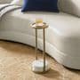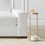 Our Odesa accent table boasts a lot of style within a compact footprint. Pairing antique brass with white marble, it makes a perfect resting spot for a book, beverage or floral arrangement, and it complements a wide range of interiors.
