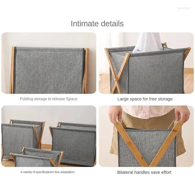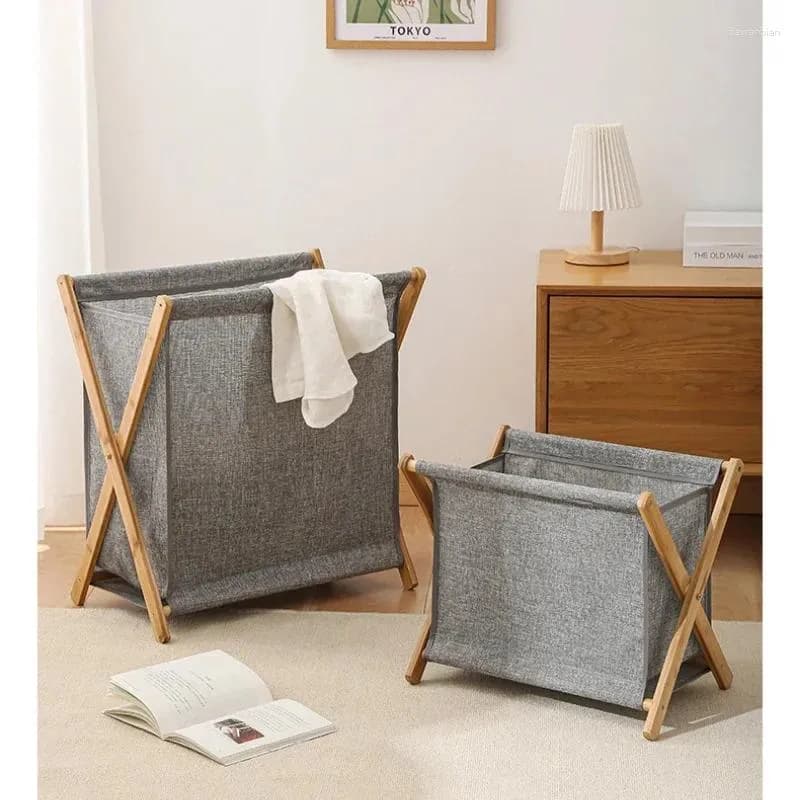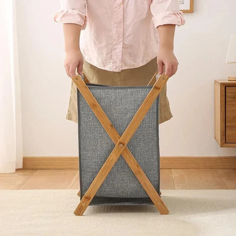 Collapsible Wood Removable Laundry Hamper With Removable Fabric Liner And X Frame Design For Easy Sorting