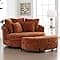 Sinzho & Wiyfun 59.8" W Upholstered Oversized Round Barrel Chair Extra Large Accent Chair with Half Moon Storage Ottoman & Wheels & 5 Pillows for Living Room, Knitted Chenille Fabric, Orange