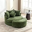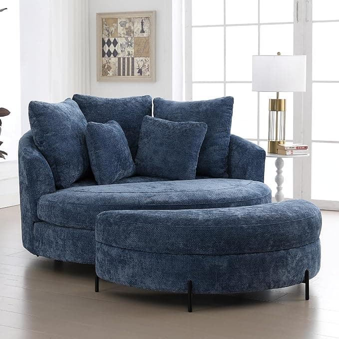 Buy Sinzho & Wiyfun 59.8" W Upholstered Oversized Round Barrel Chair Extra Large Accent Chair with Half Moon Storage Ottoman & Wheels & 5 Pillows for Living Room, Knitted Chenille Fabric, Blue: Chairs - Amazon.com ✓ FREE DELIVERY possible on eligible purchases