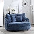 Sinzho & Wiyfun 59.8" W Upholstered Oversized Round Barrel Chair Extra Large Accent Chair with Half Moon Storage Ottoman & Wheels & 5 Pillows for Living Room, Knitted Chenille Fabric, Blue