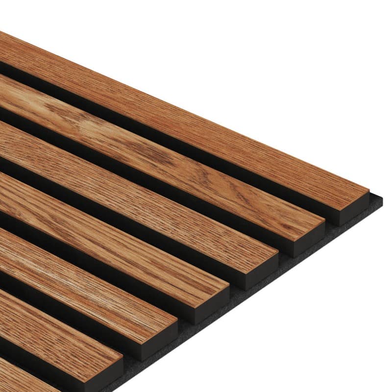 Die furnierten Akustikpaneele von Sapelli sind die richtige Wahl für alle, die elegante und zeitlose Lösungen schätzen. Die 60 x 240 cm großen Platten passen in jeden Raum. Deshalb werden sie sowohl in Privathäusern als auch in Gemeinschaftsräumen, wie z. B. Büros, gerne eingebaut. Die Liebe zum Detail und die sorgfältige Verarbeitung sorgen dafür, dass diese Wahl viele Jahre lang Bestand hat. Die akustischen Eigenschaften dämpfen effektiv den Nachhall und sorgen für mehr Intimität. Die Akustikplatten für das Büro sind sehr einfach zu montieren, da sie mit Klebstoff an die Wand oder Decke geklebt werden können. Alle Paneele sind auf einem 7 mm dicken schwarzen Filz angebracht, der aus recycelten Materialien hergestellt wurde.