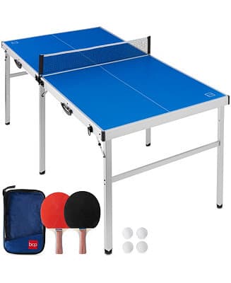 The iconic game of many game rooms is coming in force! This versatile ping pong table folds flat into a manageable, space-saving package when not in use, and comes with 2 carrying handles on the sides. When the games are done, simply fold and store under the bed or in the closet! All accessories fit inside! Nothing like an even playing field! Each foot cap adjusts to your preferred height. As we said, this is an all-in-one set, and no ping pong set is complete without the paddles. Each paddle is made from solid wood and finished with a high-quality textured surface the high-grip surface for better control and the premium wood construction feels great when it strikes one of the 2 ping pong balls included! Bring the ping to your gaming room and make this set the highlight of your next home hangout.