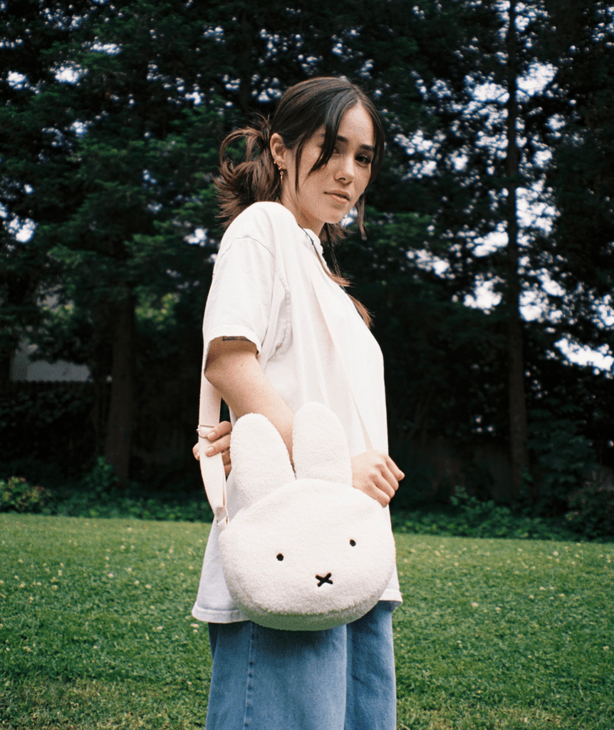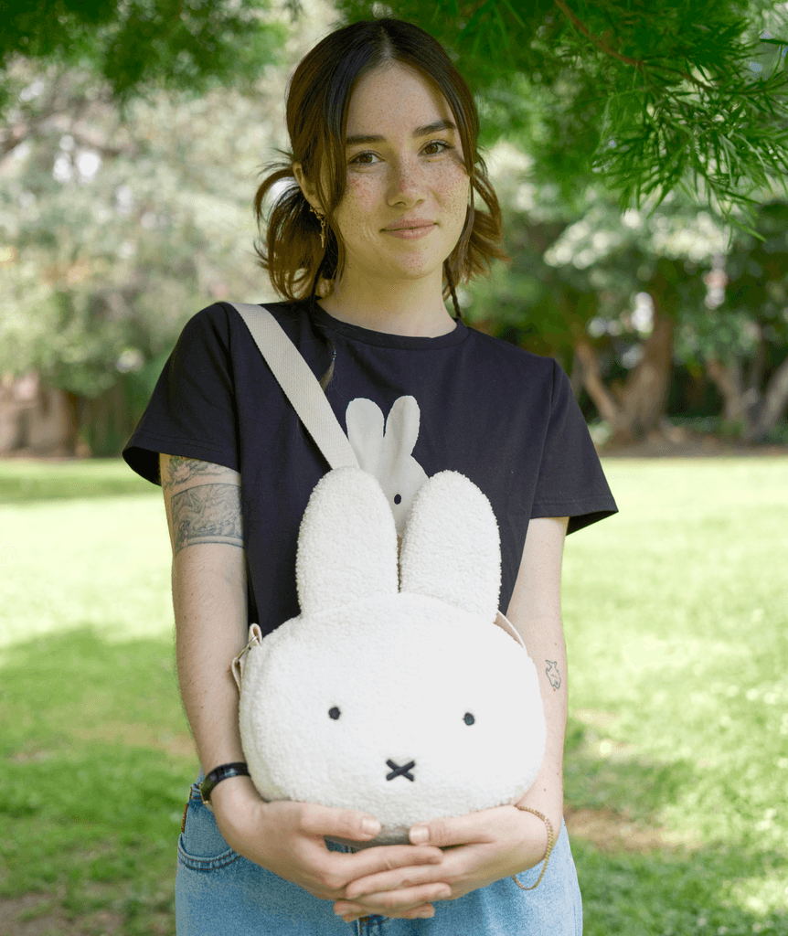 Just Peachy & Miffy officially licensed collaboration 12"x 9" (filable space 7.5"x 9") 70" max adjustable shoulder strap Top zipper closure Interior zipper pocket