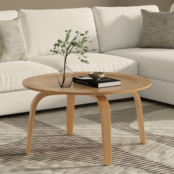 With a round silhouette and thick bentwood legs, the Payton Coffee Table adds understated style to your living room. It's handcrafted from Solid Wood Ash Veneer and features a tabletop with a slightly raised, wide edge, that not only looks great, it also helps to keep books and snacks securely on the table.