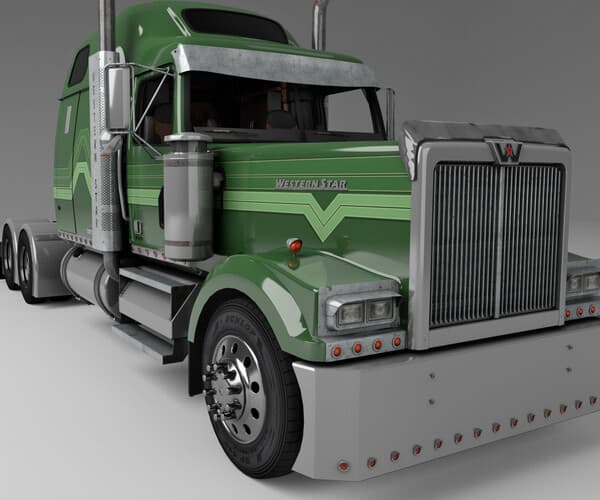 This is an accurate and highly detailed model of a Western Star 4900 Extended Hood with the Stratosphere sleeper cabin. This truck is game ready-and includes a meticulously detailed interior, exterior and chassis. Relatively low poly; this is built upon the principle of a driveable truck where the driving FOV and the main truck parts are in higher poly than the more obscured parts such as chassis underside. Simple textures and AO are added to illustrate the truck during renders, and are included. Also included are all the graphics, such as the dials.