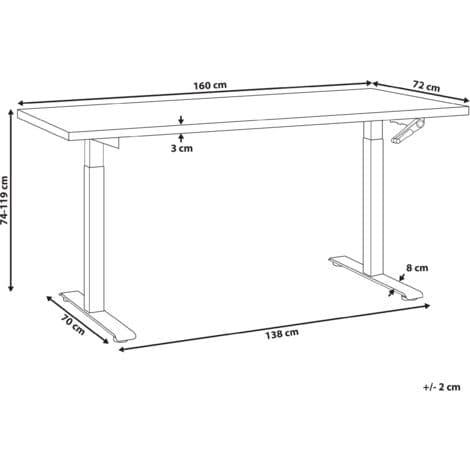 Manually Adjustable Standing Desk Modern Office Square Feet 160 x 72 cm Black Top Black Steel Frame DESTINES