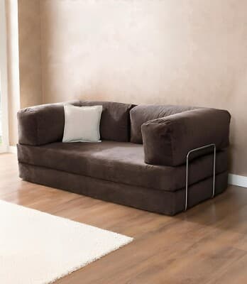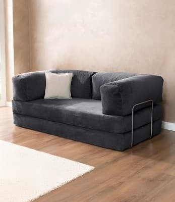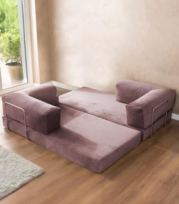 Poufudic Teddy Sofa consists of two mattresses and two angled cushions, which can be easily moved around. The mattresses are of high density foam and relatively hard, so that they are both good to sit and sleep on.