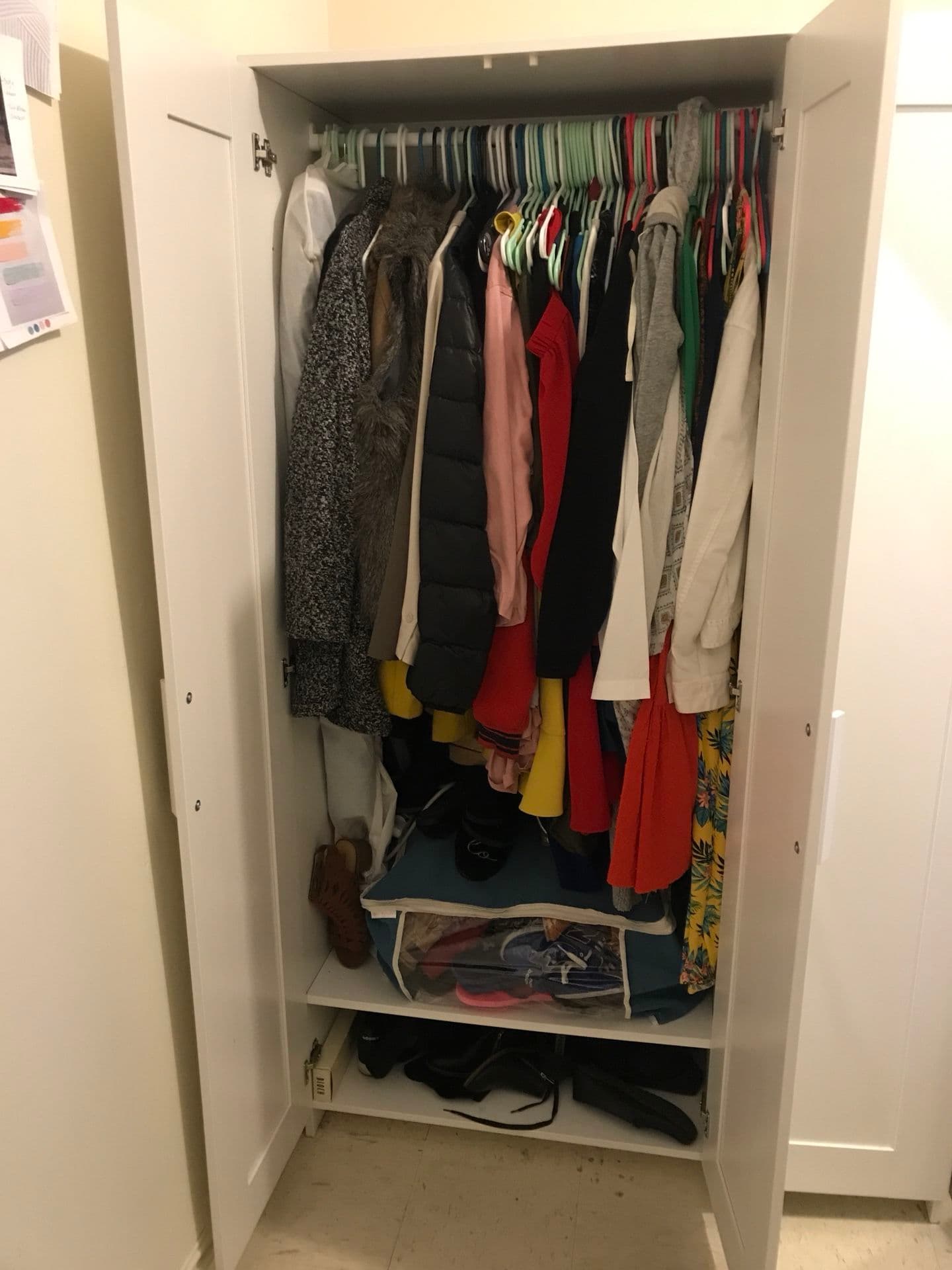 Hi I am moving to a new place and now longer need my AMAZING built closet . This IKEA wardrobe can fit a lot of clothes. It is One year old. It is all assembled so if to decided to buy it comes as is. YOU MUST COME TO PICK IT UP. Color white.