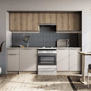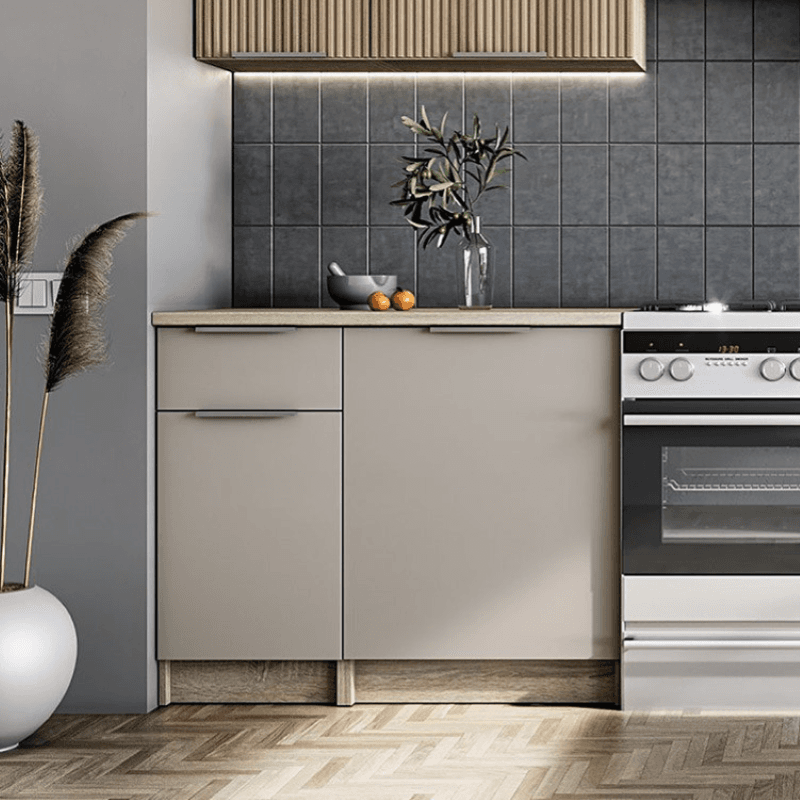 La cucina componibile Marisol porta in casa tua un mix di innovazione ed eleganza. I pensili decorati aggiungono un tocco di originalità, mentre quelli lisci al tatto conferiscono un senso di coesione. Il piano di lavoro in rovere sonoma dona armonia all'insieme. Gli armadietti inferiori offrono ampio spazio per utensili da cucina, mentre quelli superiori agevolano l'organizzazione. Con Marisol, la tua cucina sarà ordinata e funzionale, offrendo sia un'estetica accattivante che una praticità quotidiana. Essendo componibile, la cucina moderna Marisol ti permette di personalizzare lo spazio secondo le tue preferenze, garantendo un ambiente cucina su misura.
