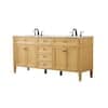 Timeless Home 72 in. W x 21.5 in. D x 35 in. H Double Bathroom Vanity in Natural Wood with White Marble