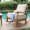 Enjoy warm summer breezes from your porch, patio, lawn or garden by choosing this classic Cambridge Casual Caterina Weathered Teak Patio Rocker Conversation Set with Blue Spruce Cushion.