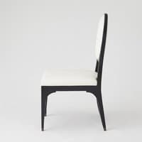 This gorgeous chair features a Hollywood Deco silhouette with top grain white leather and matte black lacquer finish. Solid brass hardware accents complete the look. Every bit of this chair is meticulously crafted and artisan finished - as well made as the luxury vintage pieces which inspired it!