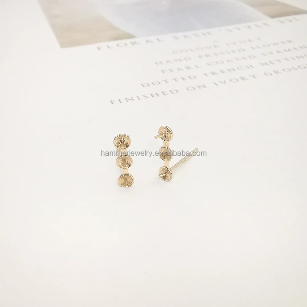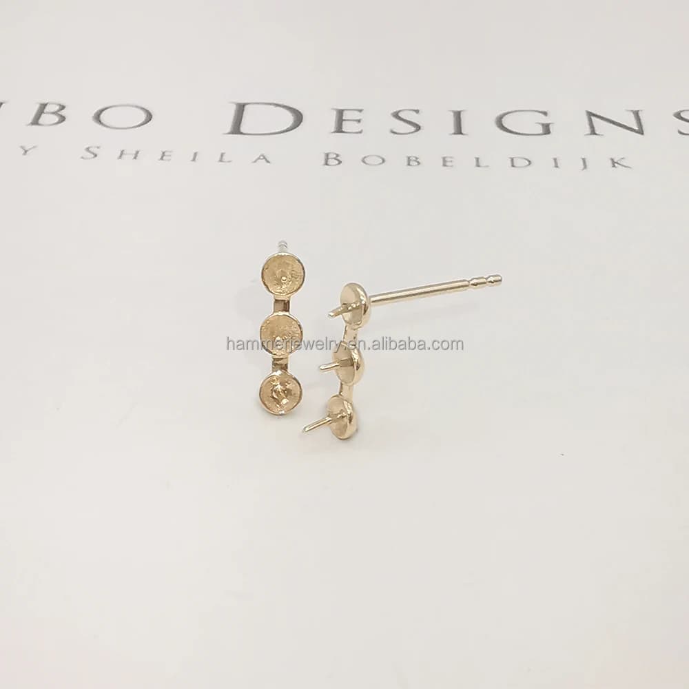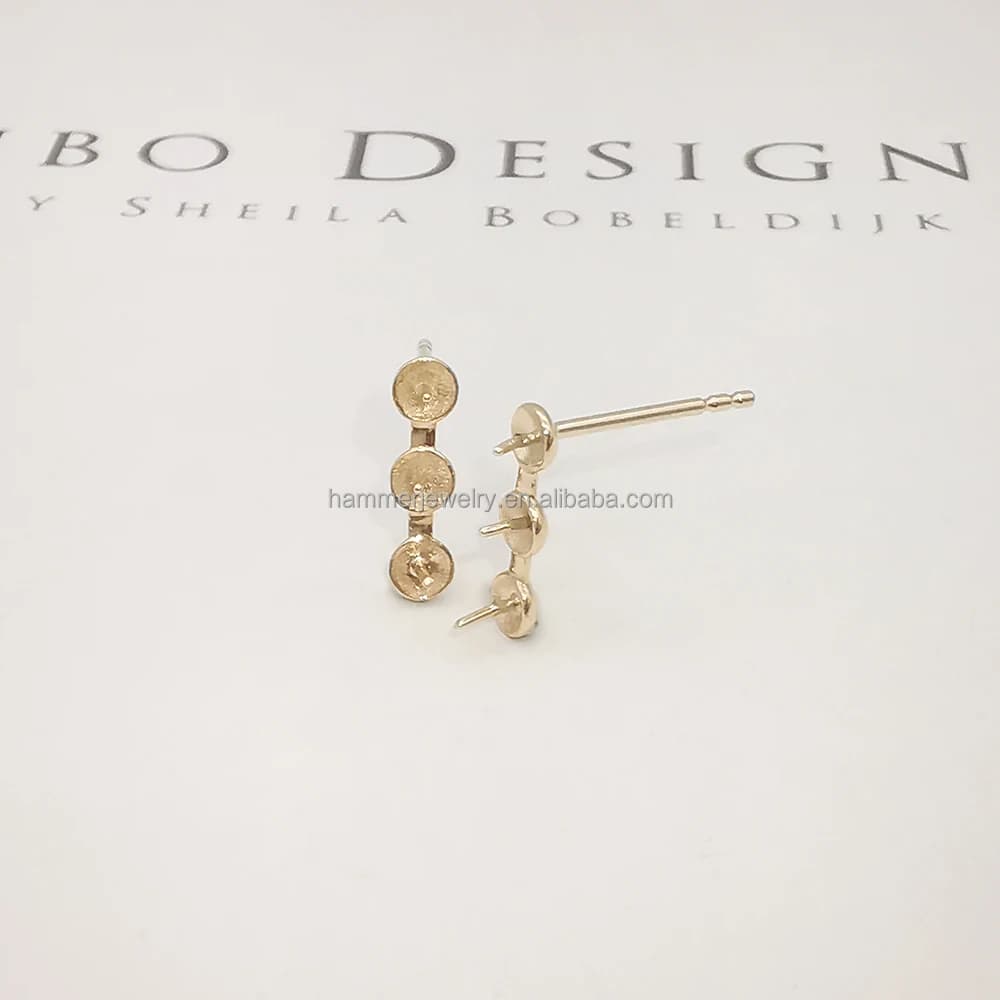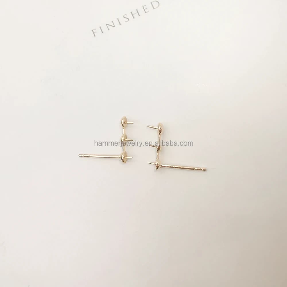 Simple Design 14k 18k Solid Gold Pearl Mounts Settings Diy Pearl Earring Real Gold Jewelry Findings