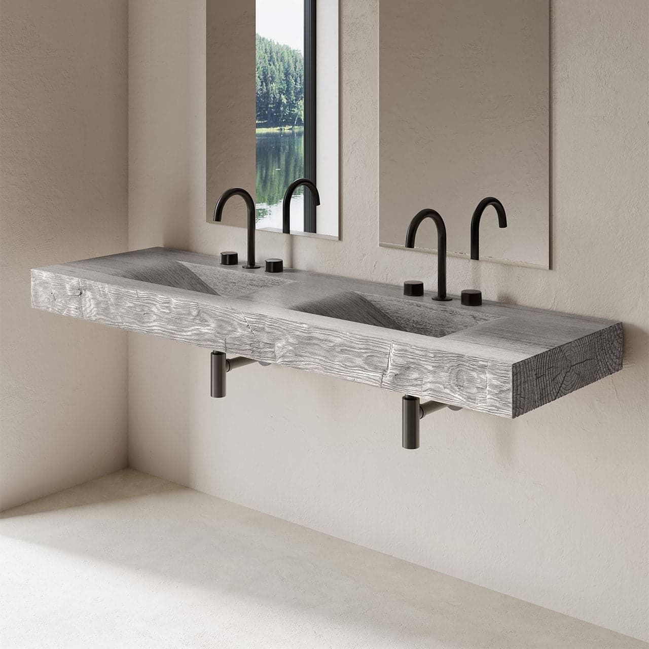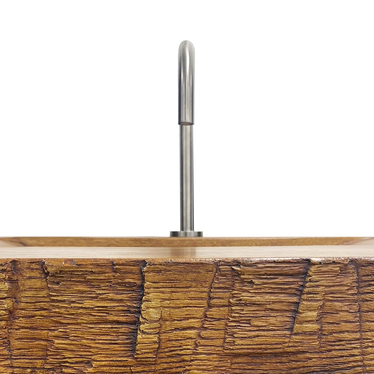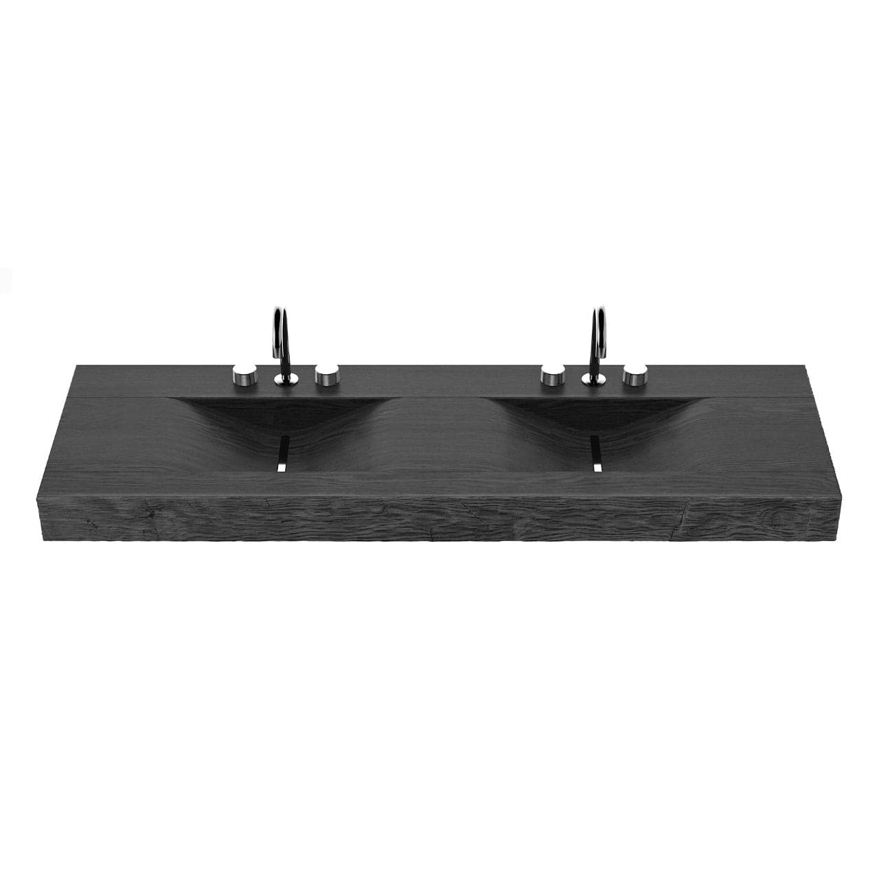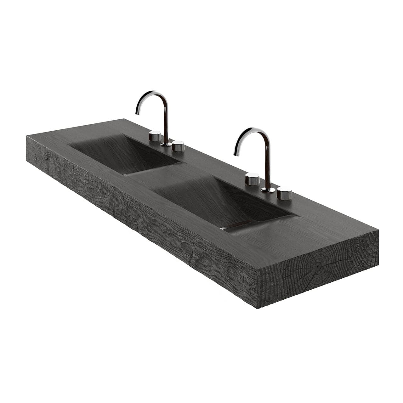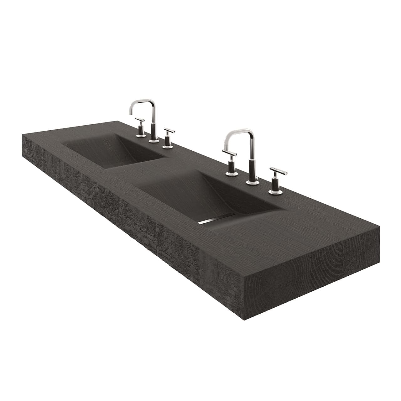 With a rugged façade and a graceful interior, our Tahoe sink is concrete turned functional art. Each sink displays the aesthetic of natural wood while employing environmentally-conscious materials and fabrication. Originally cast from a single slab of carved wood, the Tahoe exquisitely captures the textures, cracks and nuances of rustic wood - which are further highlighted by our artisanal staining process. Hand-hewn edge details adorn the entire perimeter. The twin basins slope effortlessly from the countertop to meet slot drains with removable inserts (available in 3 finishes). Each sink is handcrafted by skilled artisans in the US. For custom sizes and finishes, please inquire at 888-474-7977.