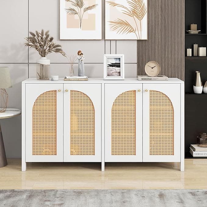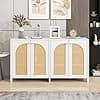 HAINEW Buffet de style maison de campagne avec 4 portes en rotin, multifonction, armoire de rangement, pour couloir, chambre à coucher, salon, 145 x 40 x 80 cm, blanc