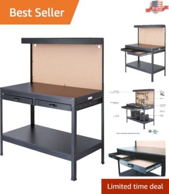 Multipurpose Workbench with Power Outlets & Light - Durable Steel Construction