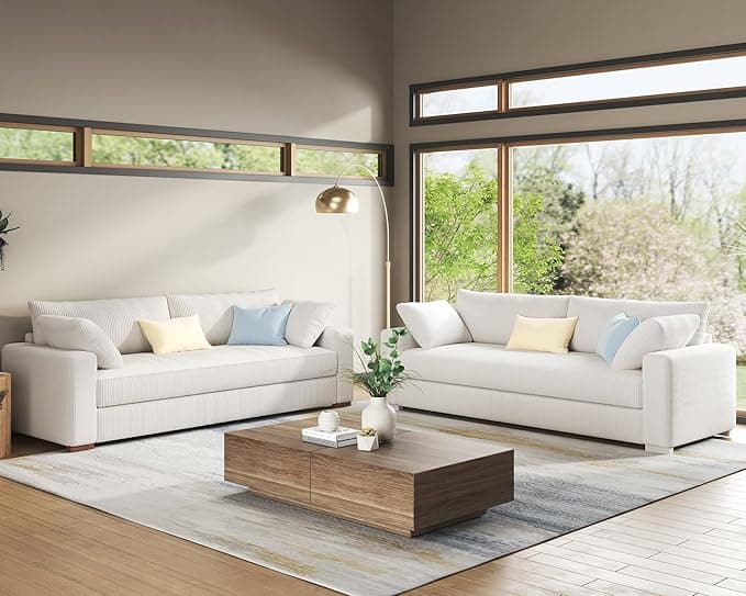 Buy Jocisland Sofa, 3 Seater Comfy Couch, Modern Sofa Couch with Corduroy Upholstered, 2 Piece Set Couch for Living Room Home Office -White Couch: Living Room Sets - Amazon.com ✓ FREE DELIVERY possible on eligible purchases