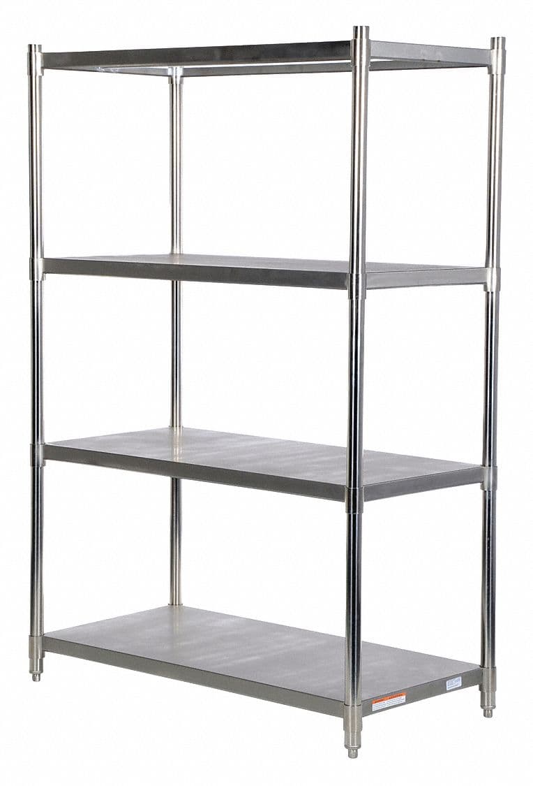 VESTIL Metal Shelving: 72 in x 48 in x 24 in, Solid Shelf, 600 lb Load Capacity per Shelf, Silver