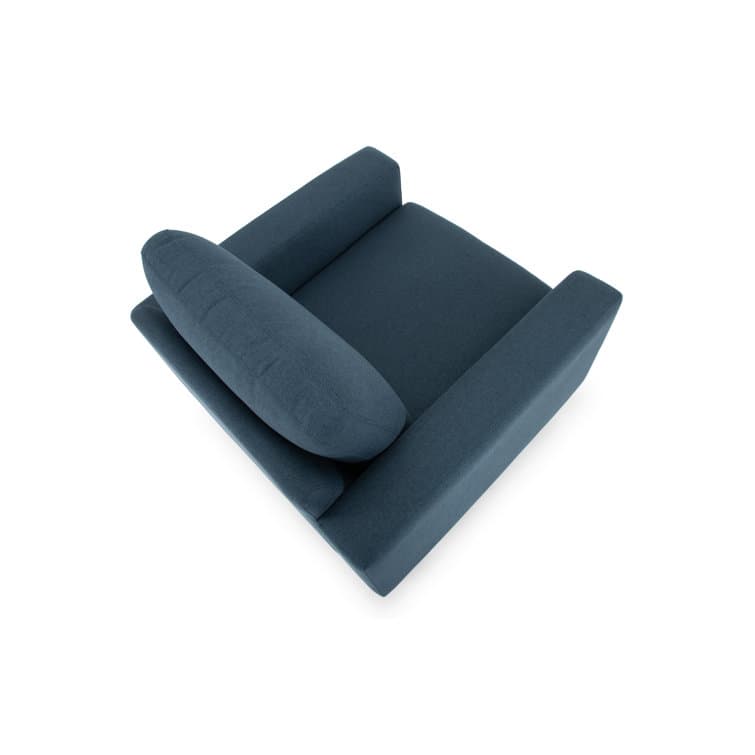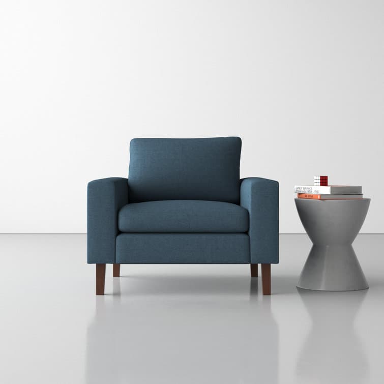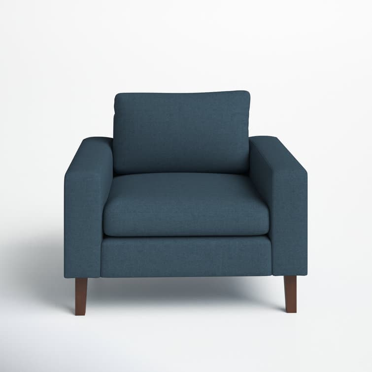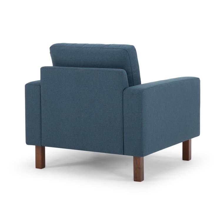 Robust retro. This accent chair’s tidy square arms, low profile, and tapered dowel feet give it a sleek look with roots in mid-century design. Built with a solid wood frame and wrapped in a performance fabric, it’s ready for daily use. Reversible cushions keep spills out of sight + out of mind.