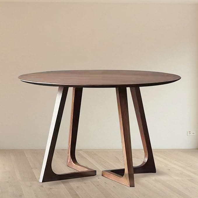 Mid Century Modern Solid Wood Round Dining Table Minimalist Walnut Rustic Pedestal Design Small Leisure Coffee Table for 2 4 Person Dining Room or Kitchen