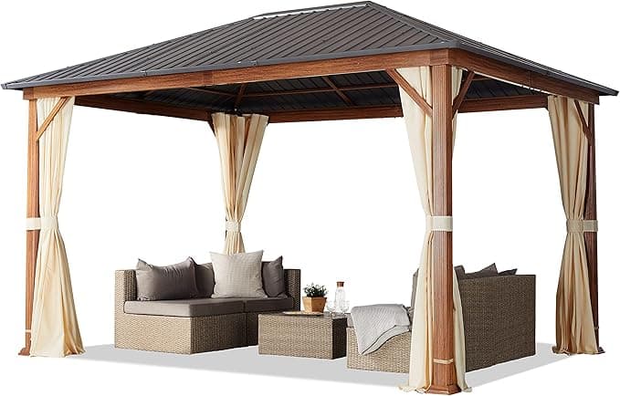 TOOLPORT Garden Gazebo 3 x 4 m Wood Effect Steel Roof Hardtop 4 Side Panels in Champagne