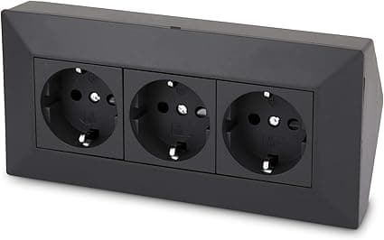 Regleta de 3 enchufes, serie C1, color negro. Ideal como enchufe de mesa, enchufe de esquina o como enchufe para debajo de los muebles. Enchufe – 3 enchufes con protección de contacto. Tecnología – 230 V CA máx. 16 A, 3600 W. Dimensiones: 180 x 80 x 80 mm. Nota: el bisel frontal se puede soltar sin tornillos haciendo clic hacia afuera.