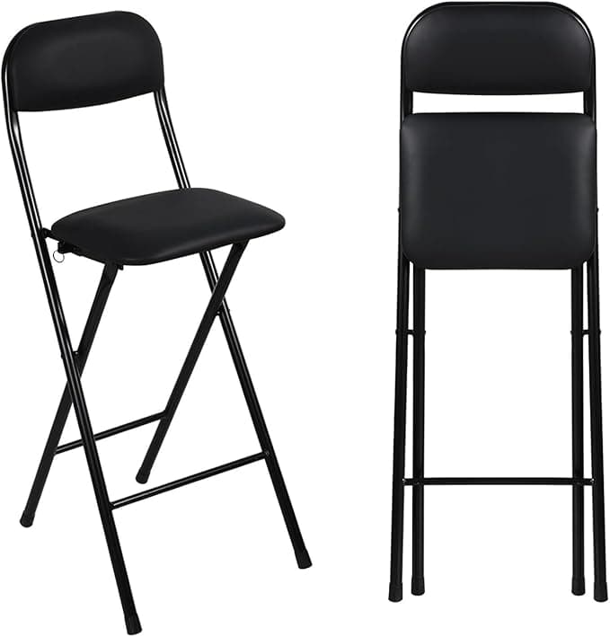 Taburete plegable alto acolchado de 26 pulgadas con respaldo, sin montaje, silla de bar plegable de 28 pulgadas con reposapiés para cocina, oficina, tienda (negro, 27.6 in/28 pulgadas)
