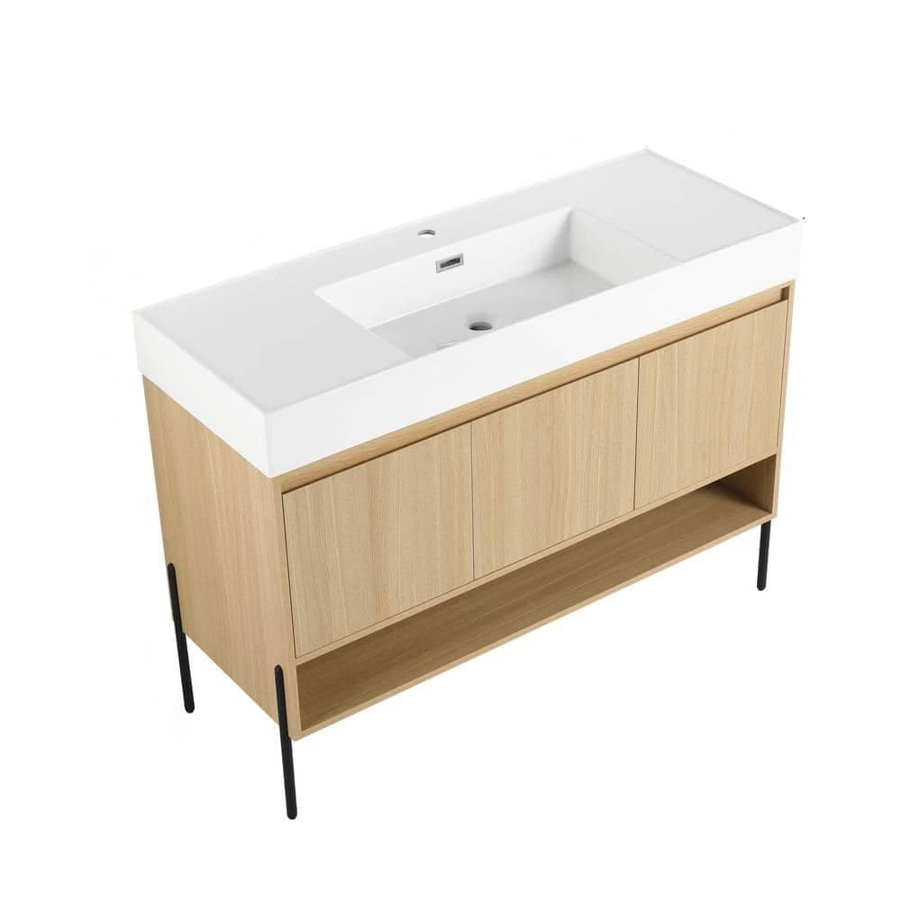 Hot Sale 47 in. W x18 in. D x 35 in. H Freestanding Bath Vanity in Brown with White Resin Sink and Top, Oak Cabinet