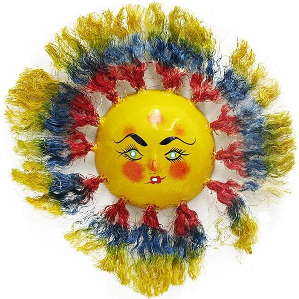 These vibrant coconut masks display playful representations of Mexican culture. Each begins with a hollowed coconut shell, adorned with additional dried plants and seed pods for embellishment. Finished with durable high-gloss paints, they provide unique wall decoration for any home. Each mask includes a hole at the top for easy wall hanging. Handmade in Guerrero, Mexico.
