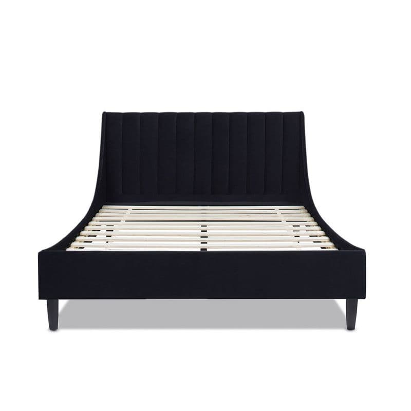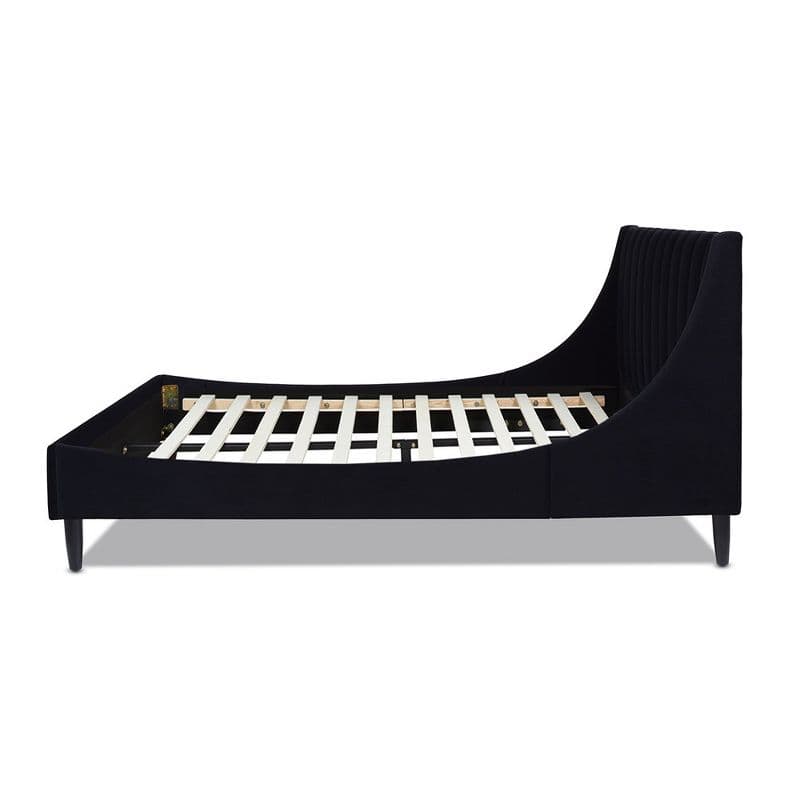 A simple yet elegant look gives the Aspen Upholstered Platform Bed by Sandy Wilson Home a modern yet timeless feel. The subtle vertical channel tufting of the low headboard and simple, solid wood legs are a nod to a retro 70's look, made modern by the graceful, curved wings that sweep seamlessly into the side- and foot-panels for a completely unique platform design.
