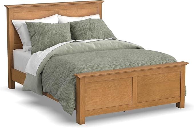 Libera tu vida con la belleza simple de la colección Oak Park. La cama Queen Oak Park de homestyles está fabricada por expertos con líneas limpias y diseño inteligente. La madera diseñada crea un núcleo duradero, mientras que las chapas de roble muestran el grano de madera único. La cabecera y el estribo cuentan con un diseño atemporal de doble panel. Los pies de bloque, los rieles laterales y las láminas proporcionan apoyo para tu colchón tamaño Queen. Teñida en un acabado de roble claro, esta cama encajará perfectamente con los muebles de dormitorio existentes o te ayudará a crear un nuevo aspecto.