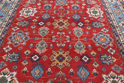 Afghan Kazak Red Rectangle 8x10 ft Wool Carpet 140461