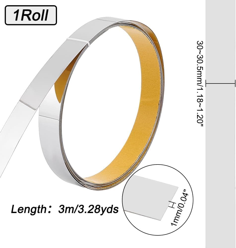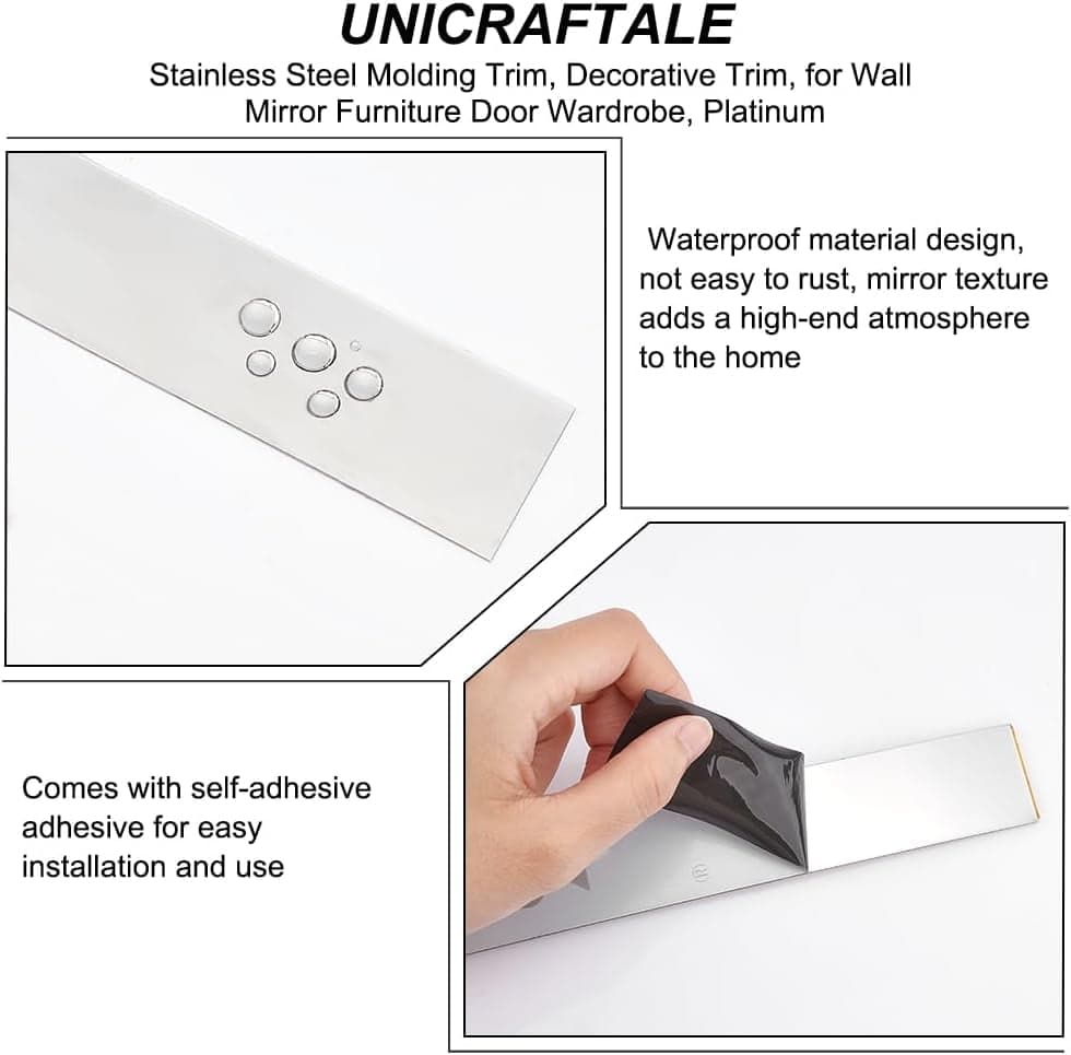 3m Wall Molding Trim 201 Stainless Steel Peel and Stick Self-Adhesive Flexible Molding Trim Molding Wall Trim for Wall Mirror Furniture Door Wardrobe Platinum 30~30.5mm Wide