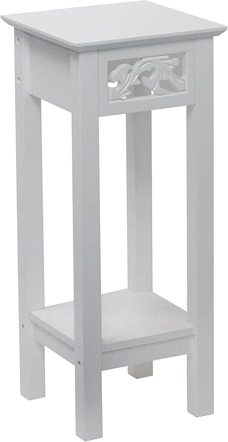 eHemco Plant Decorating Stand End Table Side Table with Storage Shelf, 10 by 10 by 23.7 Inches, White