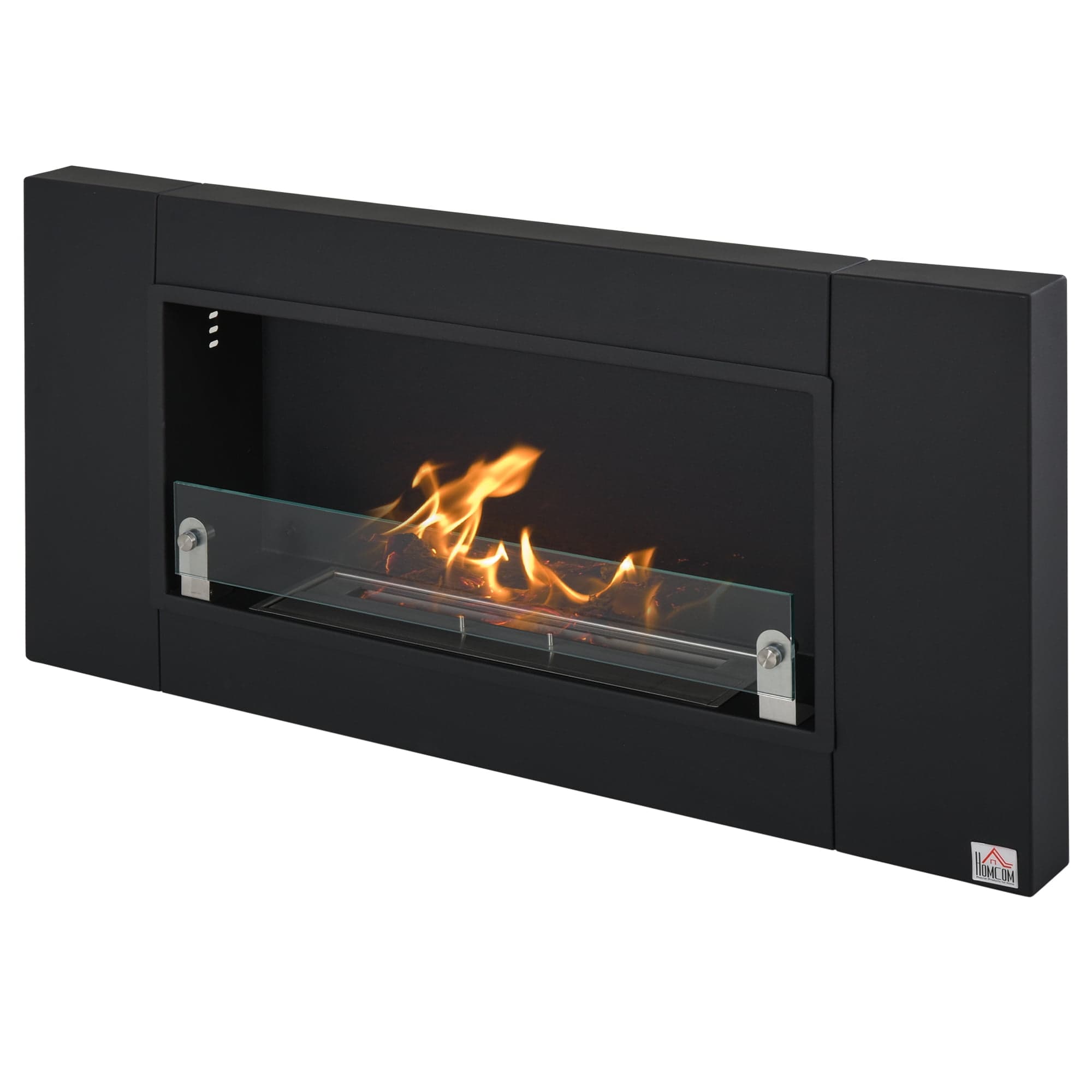HOMCOM Ethanol Fireplace, 43.25" Wall-Mounted 0.73 Gal Stainless Steel Max 323 Sq. Ft., Burns up to 4 Hours, Black