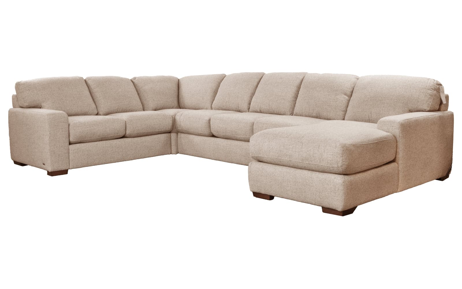 Create a comfortable and stylish living room with the Violino Upholstered Sectional. With 4 pieces and wide square arms, this sectional offers both function and fashion. Made by a top manufacturer, it features foam wrapped frames and high resiliency foam cushions for a polished and comfortable seating experience.