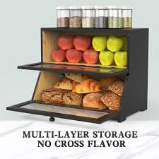 Amazon.com: LOHASOK Double Layer Bamboo Bread Box for Kitchen Counter-Large Capacity Bread Storage Container Farmhouse Bread Box with Window Bread Holder (Black) : Home & Kitchen