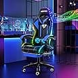 HOFFREE Led Gaming Chair Massage with Speakers Big and Tall Video Game Chair with Footrest for 400lbs Reclining High Back Computer Desk Chair Blue and Black