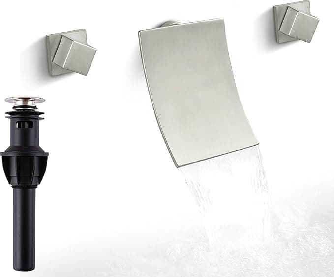 DOLGABA Waterfall Bathroom Faucet Wall Mount Vanity Faucet with Pop Up Drain, Brushed Nickle