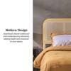 Modern Beige Wood Frame King Platform Bed with Rattan Headboard