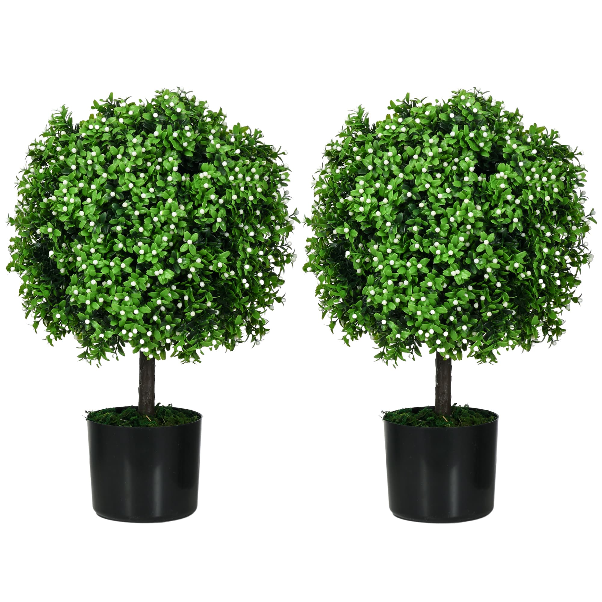 HOMCOM Faux Topiary Trees with Fruits 2 Pack 20.75" Artificial Boxwood White for Home Office Decor | Aosom.com